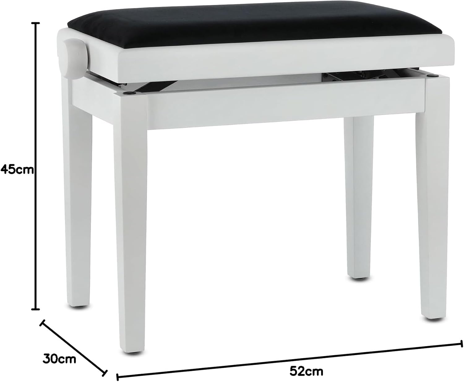 • Óptima superficie de asiento: Con una generosa superficie de asiento de 52×30 cm, el banco de piano ofrece suficiente espacio para sentarse y tocar cómodamente.