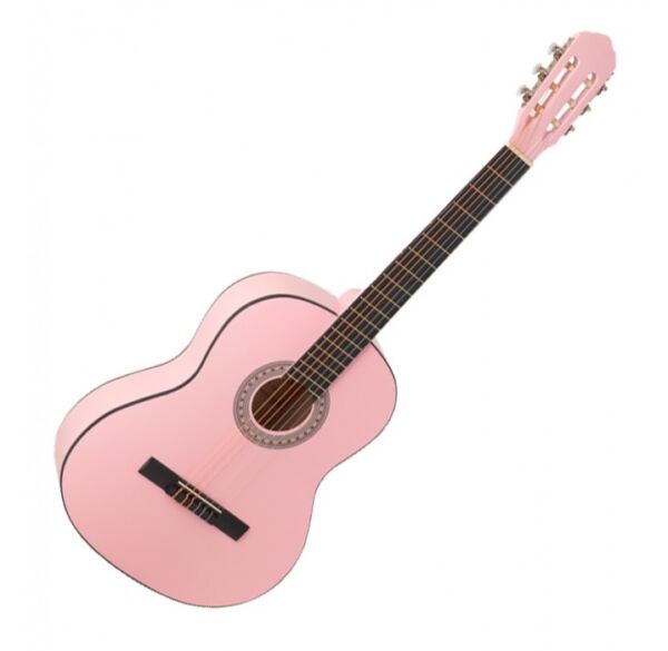 Rocio 10 tamaño 4/4 en color rosa, es una popular  guitarra española con un precio asequible para que no tengas que vaciar tus bolsillos. Una guitarra de iniciación con tamaño 4/4 super original