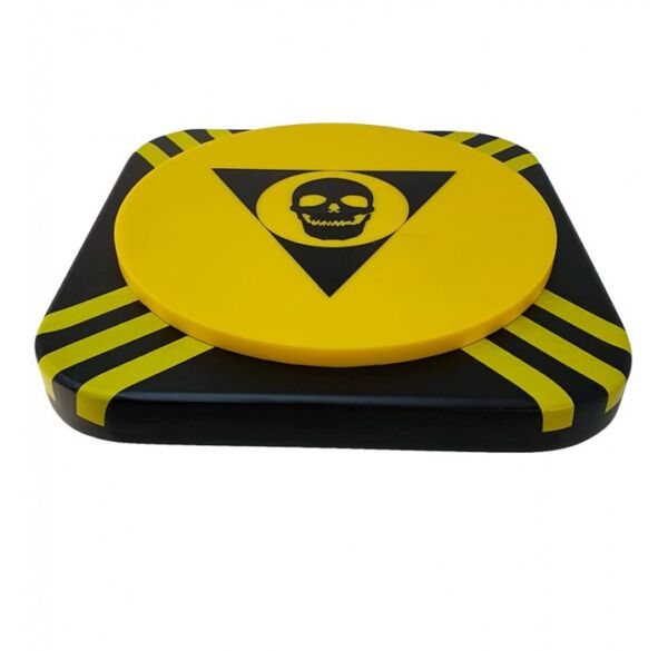 Grafix GXPAD-HZ, Si buscas un pad de practicas para practicar tu digitación y técnicas de redoble hazte con este genial pad de la marca americana Grafix! Con un agresivo look rectangular en negro y amarillo con calavera radioactiva incorporada el modelo HZ cuenta con una superficie de silicona especialmente diseñada para conseguir un rebote natural similar al de tu caja. Puede ser utilizado sobre tu mesa o sobre un soporte de caja sorda estandar gracias a su rosca inferior. Mejora tu precisión, pegada y tempo con el genial pad HZ de Grafix y llevatelo donde quieras!