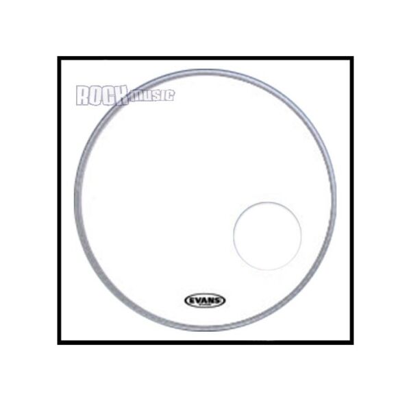 Parche para bateria Evans BD22RSW Transparente. Solapa y agujero de 5″. Parche con agujero de 5″ para micrófono son protección anti rotura.