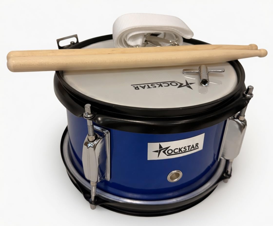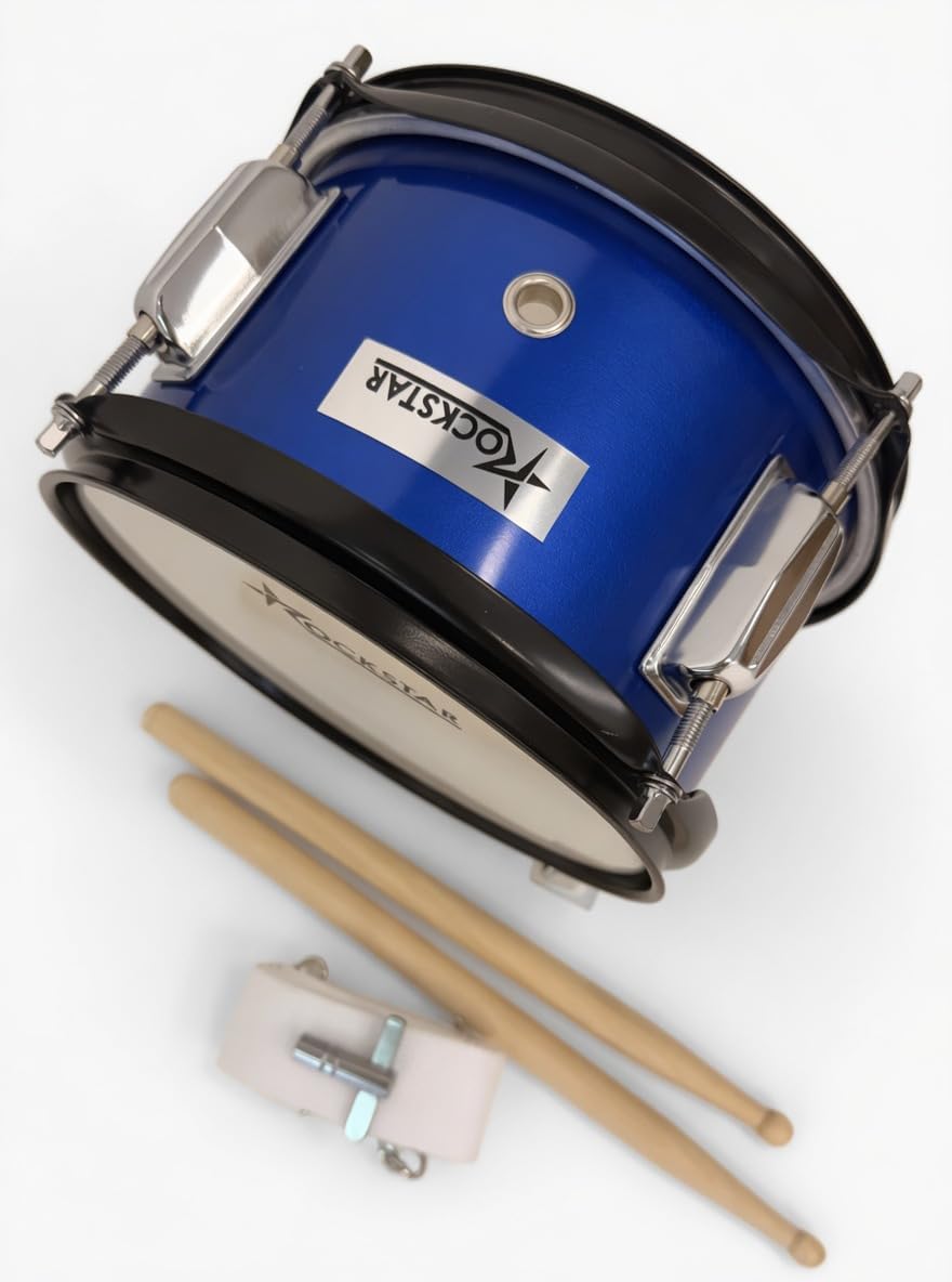 Tambor Azul Metalizado Rockstar SMS0805BL 20,5 cm x 13 cm con correa y baquetas envio gratis